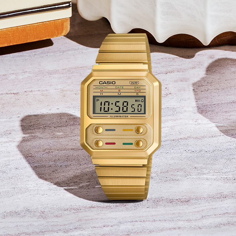Часы Casio Vintage A-100WEG-9A являются копией модели F-100, которая была первой моделью Casio в пластиковом корпусе.