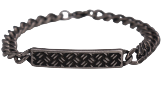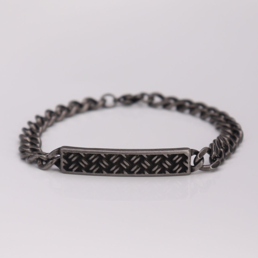 Центральным элементом дизайна является прямоугольная пластина, расположенная в центре браслета. Рельефный узор на пластине добавляет текстуру и визуальный интерес, не перегружая общий вид.
