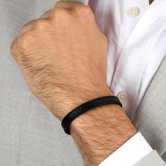 Браслет изготовлен из мягкой и эластичной кожи теленка, которая приятна на ощупь и обеспечивает комфортное ношение в течение всего дня. Вставки из нержавеющей стали придают браслету прочность и долговечность, а также добавляют современный акцент в его дизайн.