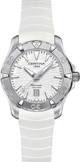 Швейцарские кварцевые часы Certina DS Action Lady C032.251.17.011.00 на каучуковом браслете идеально сядут на женское запястье и прекрасно дополнят любой образ. Элегантное признание в любви к морской стихии: тонкий декор в виде волн придает циферблату этих часов неповторимый характер, напоминая о вечном очаровании океана.