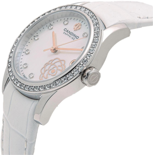 Нежные женские наручные часы Candino Lady Elegance Flower Date C4721/1 с перламутровым цветком на циферблате.