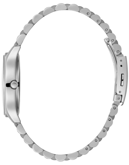 Перламутровый циферблат завораживает своей нежностью и мягким мерцанием. Серебристые стрелки элегантно скользят по циферблату, а минималистичные метки в виде точек добавляют часам нотку современной изысканности. Благодаря люминесцентному покрытию стрелок вы всегда сможете легко узнать время, даже в условиях недостаточной освещенности.