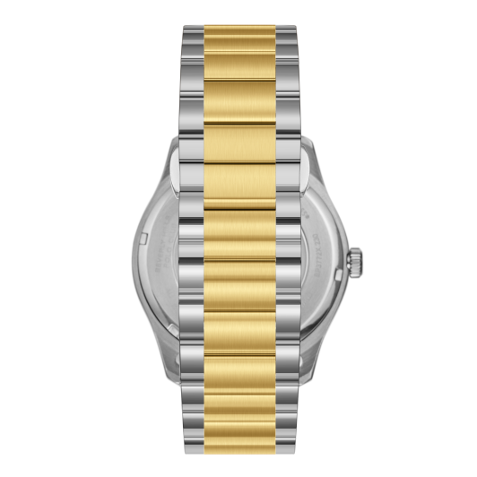 Корпус и браслет, выполненные из прочной нержавеющей стали, гарантируют долговечность и надежность. Частичное IP-покрытие цвета желтого золота придает часам утонченный и благородный вид, эффектно выделяясь на фоне серебристого циферблата. Водозащита 5 бар (50 метров) обеспечивает защиту от брызг и случайного попадания воды, позволяя носить часы с уверенностью в любых ситуациях.