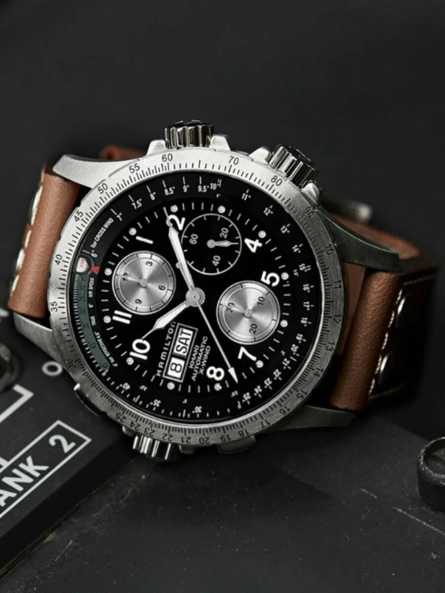 Швейцарские механические часы Hamilton Khaki Aviation X-Wind Auto Chrono H89656533 на кожаном ремешке — это высокотехнологичная модель, сочетающая в себе инновации, рассчитанный риск и точность.