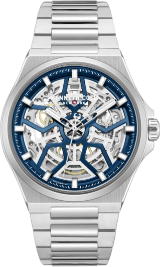 Корпус изготовлен из нержавеющей стали: это очень прочный гипоаллергенный материал, которому не грозит коррозия или изменения цвета. Под прочным минеральным стеклом расположен циферблат скелетонизированной конструкции. Класс водонепроницаемости 5 Бар защищает корпус от брызг или капель дождя.