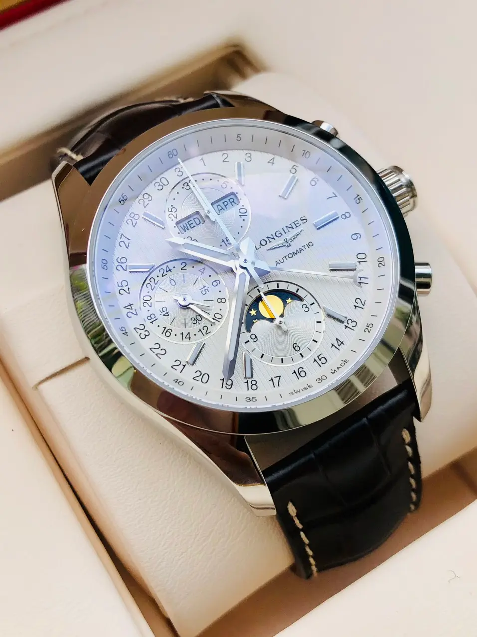 - в нижней части циферблата занял свое место индикатор фазы луны, совмещенный с 12-часовым счетчиком хронографа;