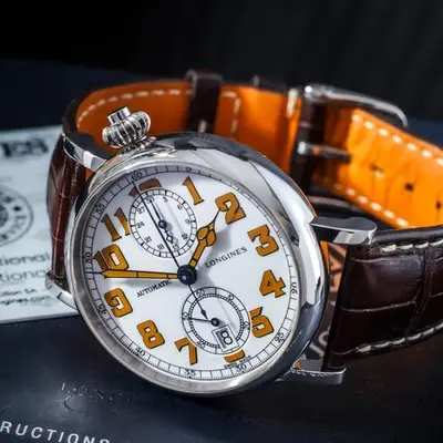 Мужские швейцарские механические часы Longines Avigation Watch Type A-7 1935 L2.812.4.23.2 отличаются дизайном, вдохновлённым пилотскими аксессуарами 1930-х годов.