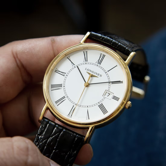 - печать римских цифр и минутная разметка в стиле “железная дорога”, стрелки с чернением и позолотой.