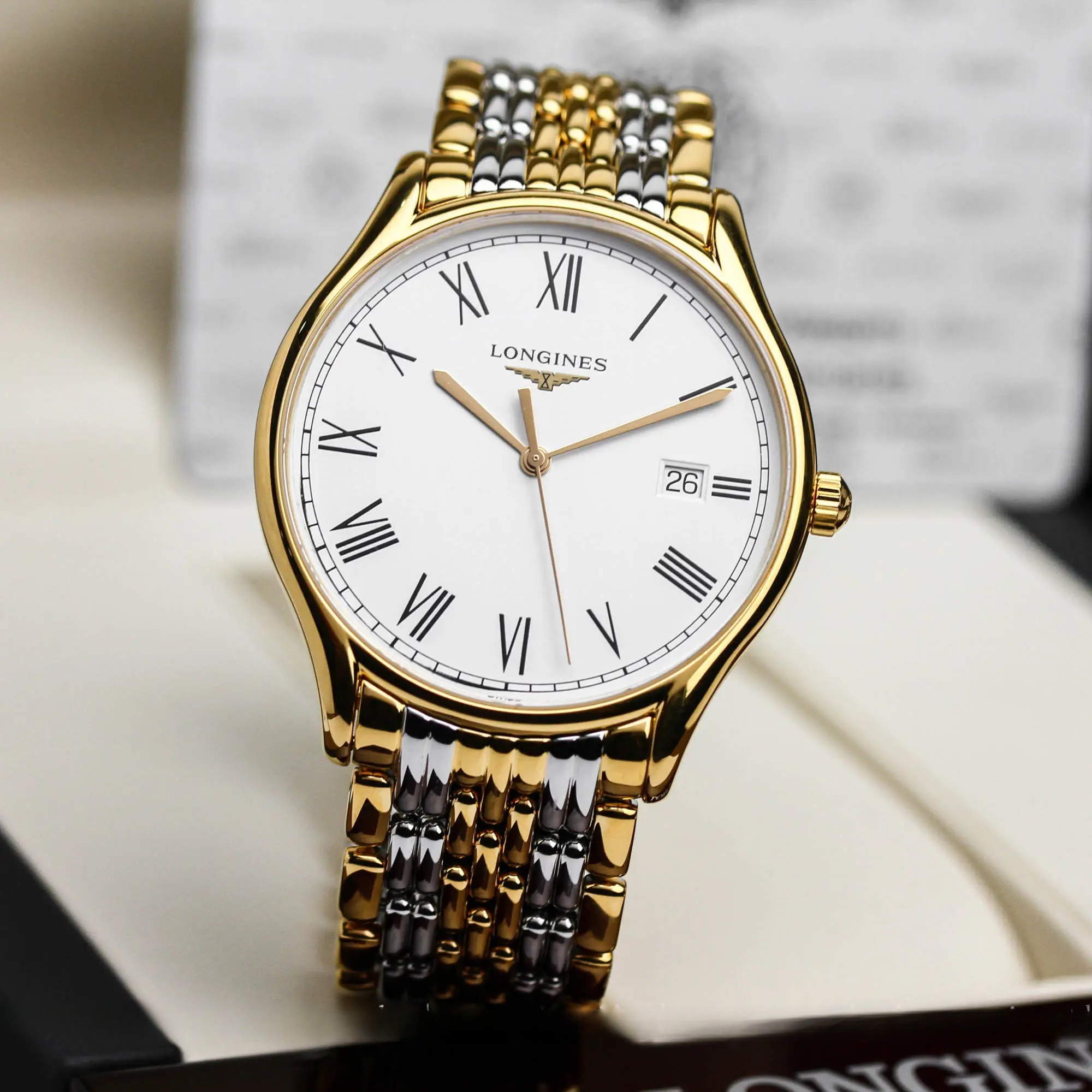 Женские швейцарские часы Longines Lyre L4.859.2.11.7 с белым циферблатом и двухцветным ремешком.