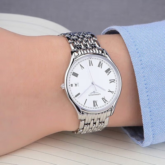 Женские швейцарские часы Longines Lyre L4.859.4.11.6 с белым циферблатом и серебристым ремешком.