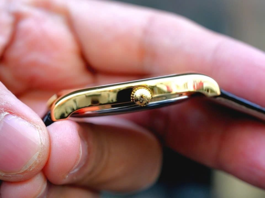 - аппликация часовых индексов и стрелки с золотым покрытием и полировкой.