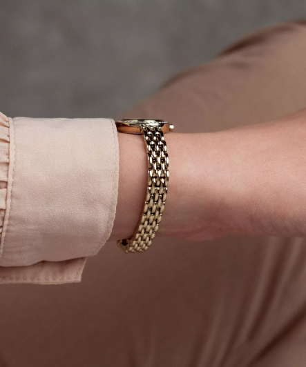 - золотистый браслет, также изготовленный из нержавеющей стали, идеально сочетается с корпусом, создавая гармоничное целое;