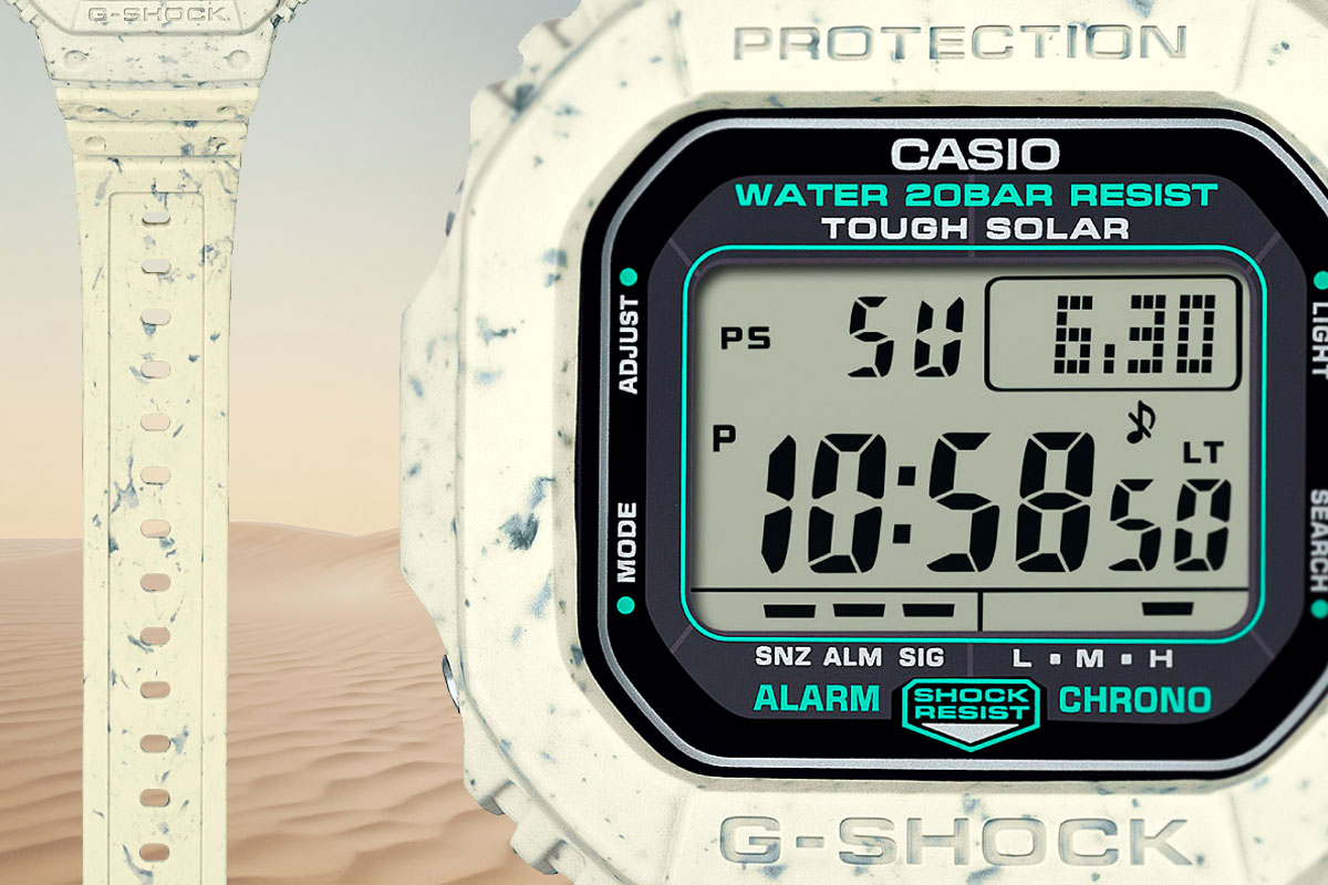 Мужские часы Casio G-Shock G-5600BG-5D. Корпус и ремешок изготовлены из отходов пластика, который использовался при изготовлении других моделей G-Shock, Благодаря этому получается уникальный красочный узор.