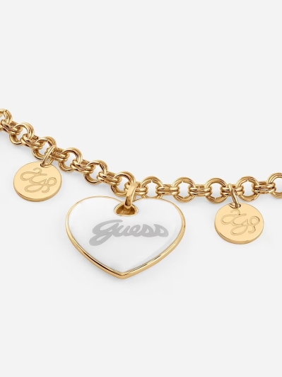 Круглые подвески с логотипом бренда: Эти подвески, расположенные по всей длине колье, служат узнаваемым символом Guess, демонстрируя ваш безупречный вкус и приверженность культовому стилю.