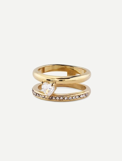 Кульминацией дизайна является крупный прозрачный камень в форме сердца, расположенный между двумя кольцами. Этот изысканный акцент приковывает взгляд и делает украшение по-настоящему особенным.