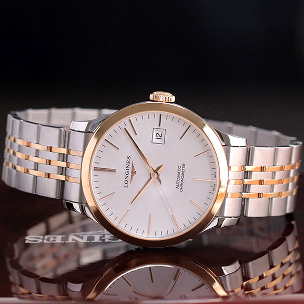 Швейцарские механические часы с Longines Record Collection L2.820.5.72.7. Автоматические часы, созданные с использованием традиций и инноваций, оснащены кремниевой спиралью баланса. Их механизм имеет сертификат хронометра COSC.