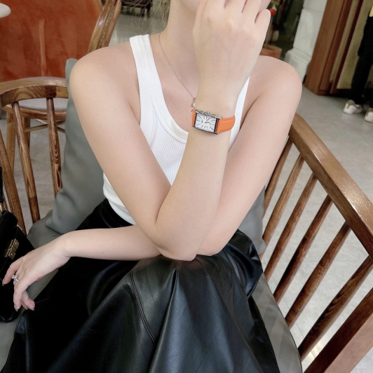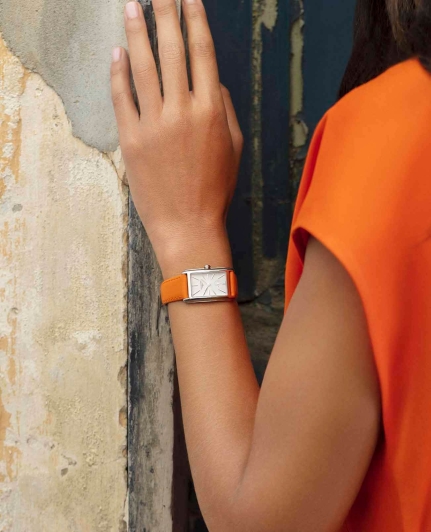 - корпус из нержавеющей стали с оранжевым кожаным ремешком;