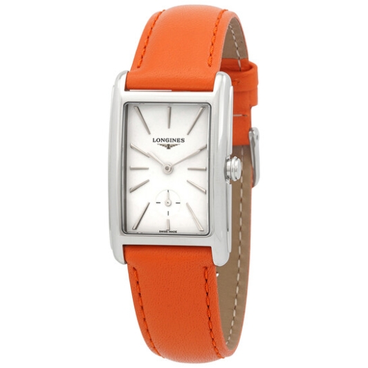 Женские кварцевые часы Longines Dolce Vita с серебристым циферблатом L5.512.4.11.8 и с прямоугольным стальным корпусом.