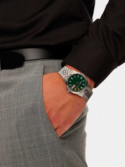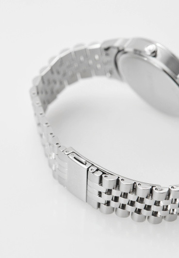 - стальной браслет с матовой и полированной отделкой с раскладывающейся застежкой;